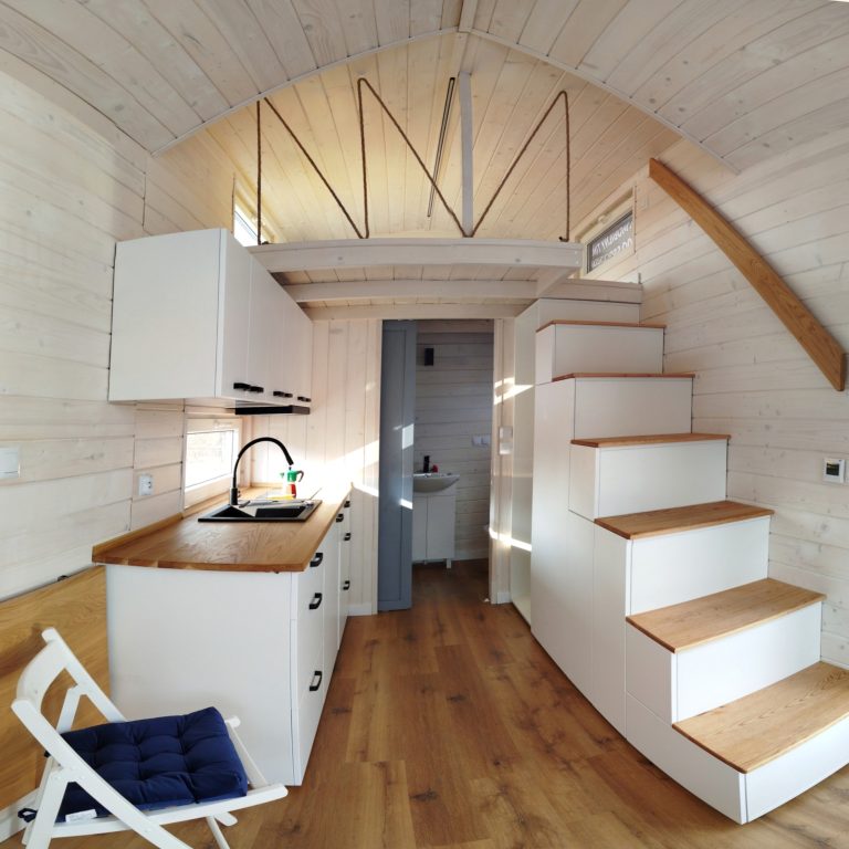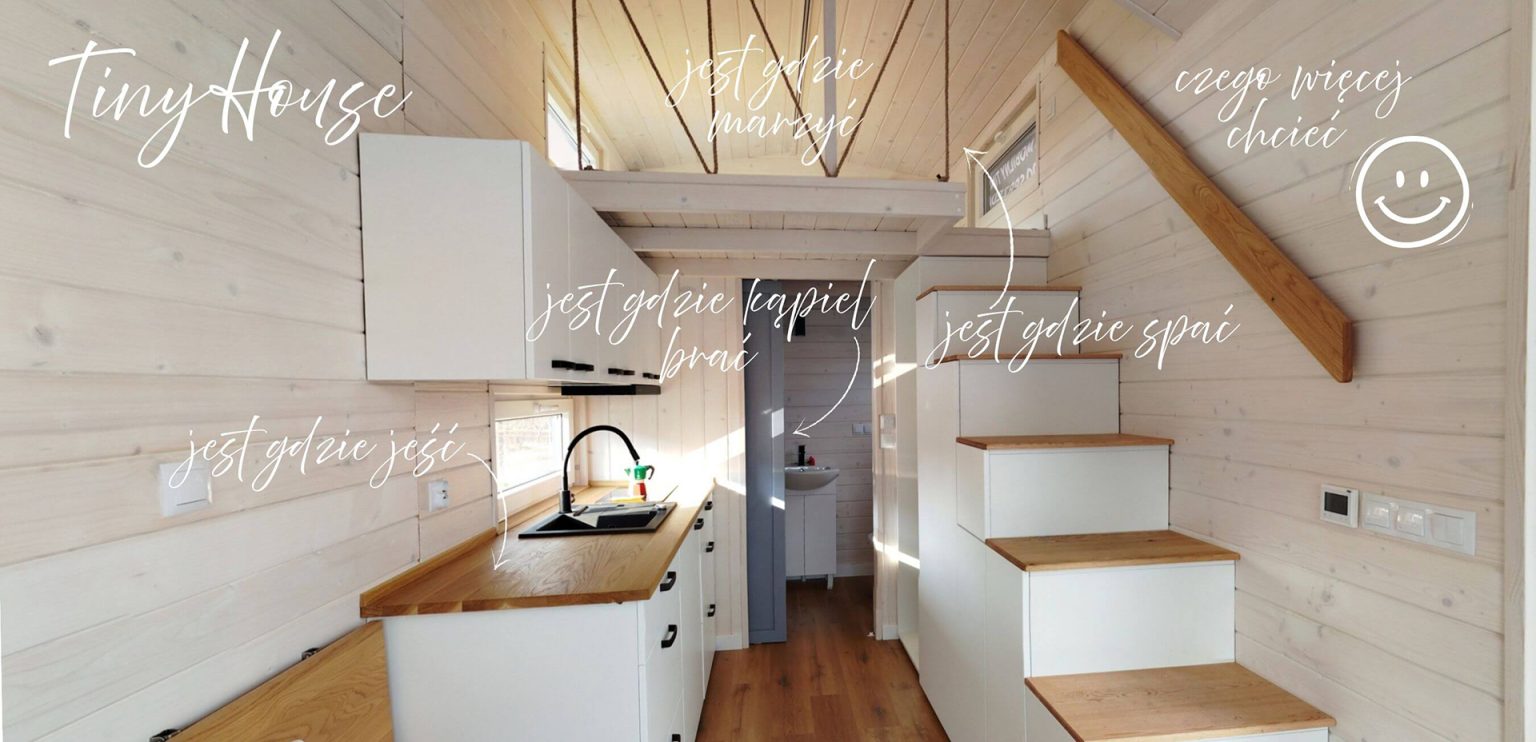 Tiny house, czyli dom mobilny, to luksusowa, w pełni wyposażona, całoroczna konstrukcja, której fundament stanowi przyczepa transportowa typu lift&go.