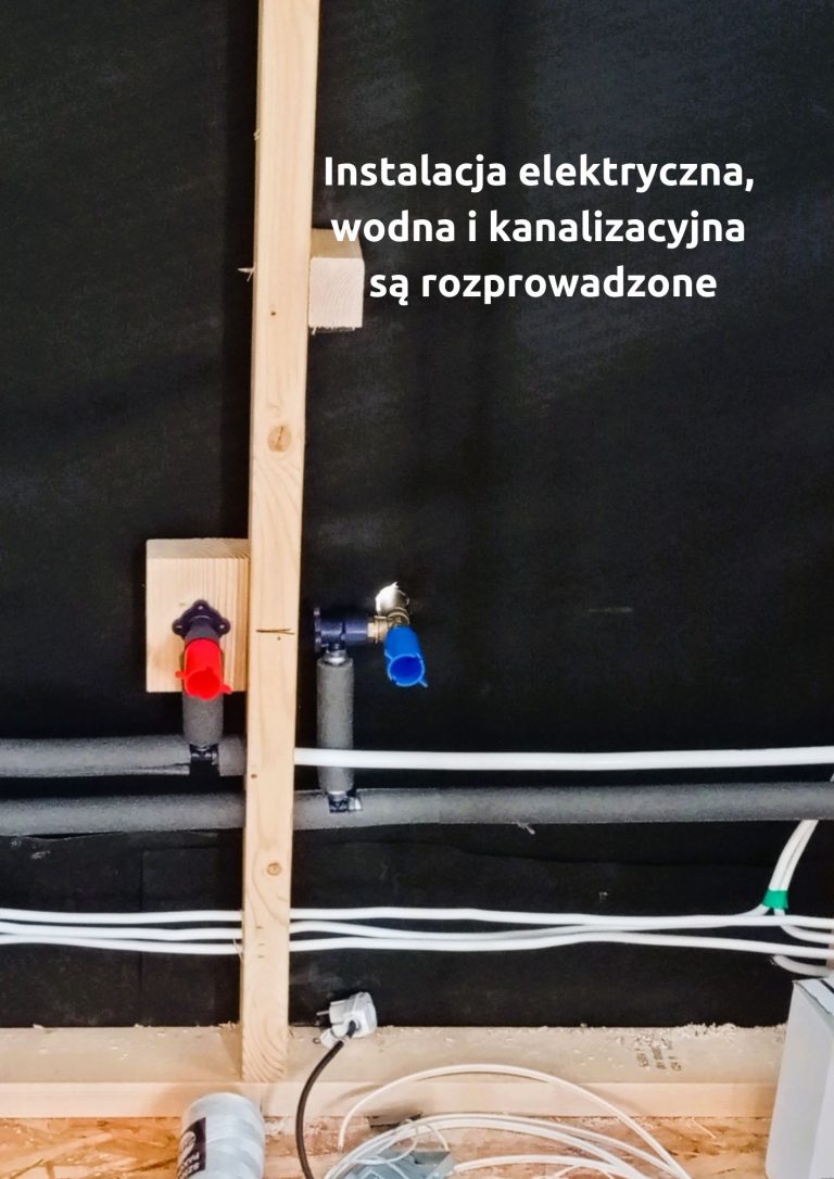 Instalacja wodna i kanalizacyjna domku przystosowana jest do przyłączenia do sieci wodociągowej i kanalizacyjnej
